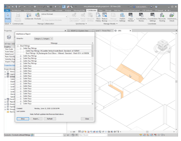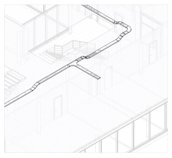 BIM identifies design conflicts in real time within the software, enabling users to identify and resolve conflicts before they impact project schedules and budgets. For example, in Figure 3 below a ductwork layout is copied from one floor of a building to the next, but one of the floors has a different height. BIM identifies that conflict so the ductwork can be adjusted for that floor in the design phase.